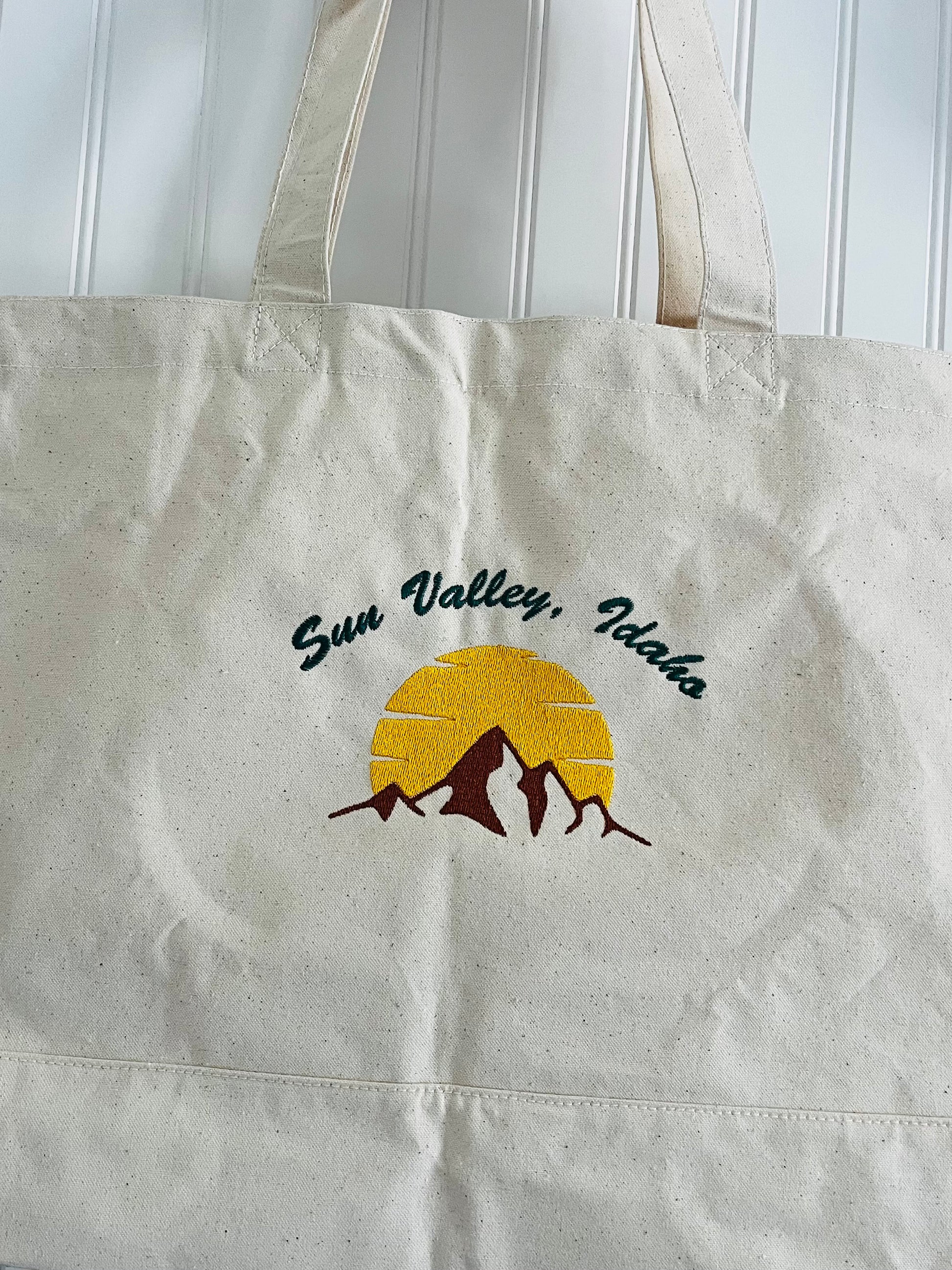 This tote gives all the Sun Valley vibes with this retro color combo! Available in both a large and small option.